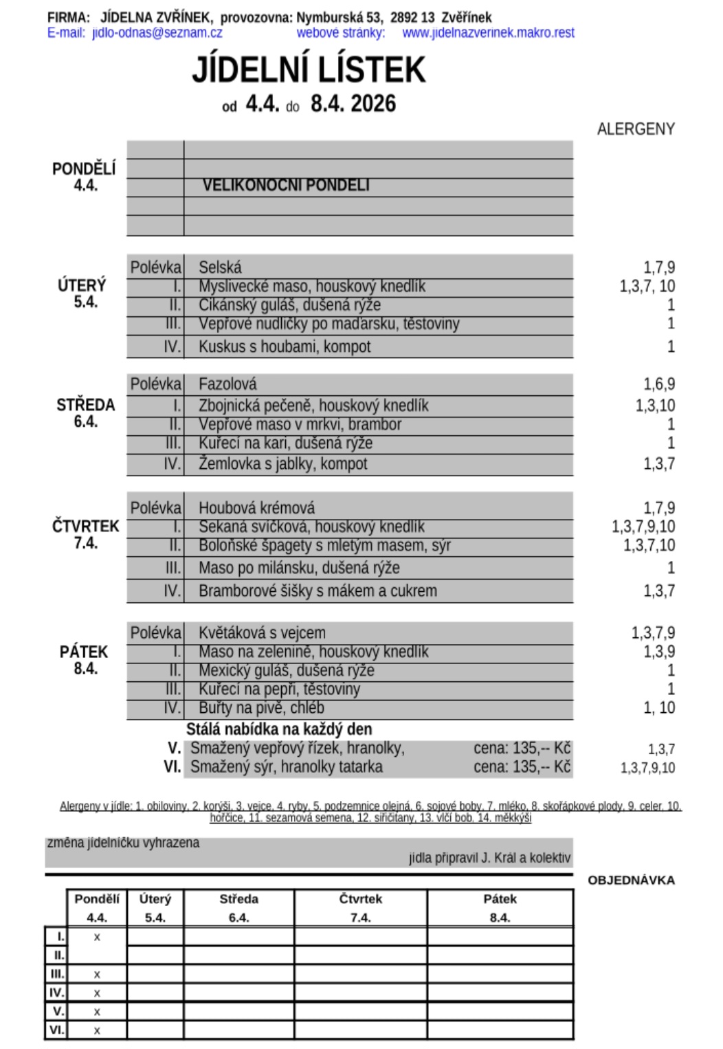 Také máte rádi ochotnou obsluhu, vše bez komplikací a znamenité jídlo? Tak to jste u nás správně. Naše idylická a útulná atmosféra totiž okouzlí nejednoho hosta. Jídelna Zvěřínek není jen pojízdné hladové okno. U nás naleznete jen skvělá jídla z těch nejvybranějších čerstvých surovin. Naše jídelna se tak zaručeně stane Vaším oblíbeným místem.